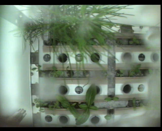 In addition to the numerical data gathered, we are taking periodic pictures of the plants with two miniature video cameras. The cameras are mounted in the “ceiling” of the plant-growth chamber (the side with the lights), and their combined field of view covers the entire “floor” of the chamber (where the plants are). The NTSC video signals feed to an ANDI-FG board from Ajeco. The ANDI-FG has a 3-input frame grabber, a Motorola 56001 DSP and a megabyte of on-board memory. On request, the ANDI-FG delivers to the host CPU a high-quality JPEG-compressed image. Ajeco has been most helpful, providing a Linux driver and excellent technical support.