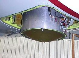 The SRA radar consists of a 20-inch Rexalite lens, a feed horn on the lens axis which looks up into a mechanical scanning mirror that mirror-images the feed horn to the focal point of the lens, a pulse modulator and RF exciter, receiver, 1.7KW Extended Interaction Amplifier (EIK) and the RT-Linux data system. The data system is the topic we will discuss here. Figure 3 is a photograph of the SRA scanner installed on the NOAA hurricane hunter. The fairing is removed in this photo.