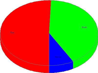 We could use a bar chart with this data, but it would not be nearly as useful as a pie chart, in which each candidate is given a proportional part of the pie. As you can see in Listing 3, our program vote.pl is not very difficult to create and produces results relatively quickly.