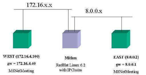 Having installed the Linux machine in the middle of the network, we delve into the TPC/IP stack so that we can create the adaption functions in a modular, nonblocking, input/output, real-time, client/server fashion. In effect, we stop the packet flow by setting up rules in IP chains and using the libpcap interface to bring the stopped packets up to user space for analysis and, ultimately, compression/decompression. Having physically reproduced the architecture of Figure 2, it is a trivial matter to establish an uninterrupted teleconference session whose packets are forced through your Linux machine. IP forwarding must be enabled for this to function, particularly since we are going to stop the flow of packets with the use of IP chains. To verify that IP forwarding is indeed enabled, type: