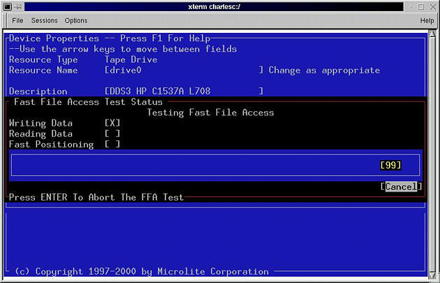 Naturally, the first thing I tried to do was a small test backup of about 9MB using my /etc directory. When I first tried this, the backup failed. Possibly the scan for sparse files affected the SCSI host adaptor. In any case, once I rebooted my system, I got successful backups on both of my tape drives.