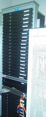 Eight diskless Pentium III CompactPCI CPU cards running at 500MHz and powered with 512MB of RAM. The CPUs have two onboard Ethernet ports and are paired with a four-port ZNYX Ethernet card providing a high level of network availability.