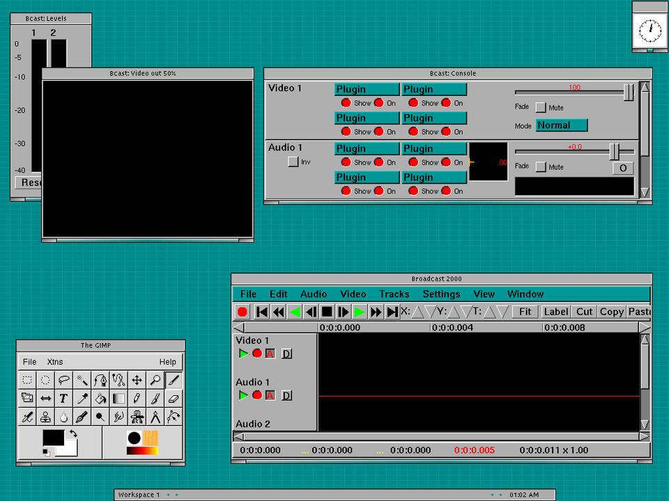 The Broadcast 2000 video editor, based on QuickTime, offers many advanced features including effects using the GIMP.