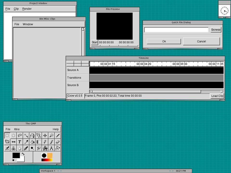 if(!dir) return 0;Crow is very much an alpha and too incomplete for use. Fry says that his files on SourceForge.net are an old version and that he is planning to rewrite it. He wants to talk with others interested in designing an editing application for Linux from the ground up. “I'd like to have a fully featured editor capable of doing real-world editing tasks like 3:2 pull-down, EDL output database clip management and HD playback”, says Fry.