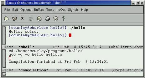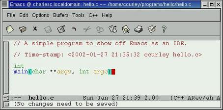 What I will do to show off Emacs as an integrated development environment (IDE) is walk through the development of a short C program and show you how to do it. We'll write the infamous Hello World program known and loved by C programmers everywhere.