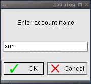 The second Xdialog command allows the user to type in an account name or to accept the default value (Figure 2). The last one (Figure 3), displays a file selection window in which one can type or select with the mouse the name and location of the current log file. At this point, all the user choices are in /tmp/netsettings, so we simply must source that file and launch the connection.