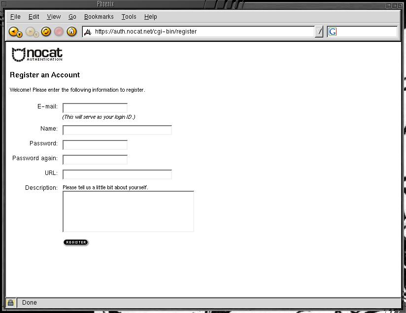 Building NoCat itself is a simple process: simply download the NoCat tarball from www.nocat.net, do make gateway and make install and edit the configuration file, /usr/local/nocat/nocat.conf. For full functionality, install a DHCP server and configure it to hand out private addresses for your wireless network.