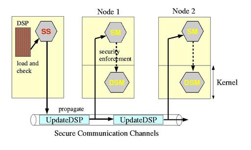 We load the DSI kernel module DSM on each node to enforce security at the kernel level: