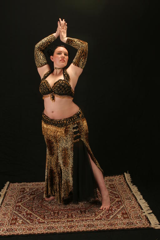 Belly dance appears in a variety of venues. Dancers assemble a wardrobe of costumes to suit different performance needs. Simone wears her modern wild animal costume to performances where she can demonstrate her wit and vivacious style.