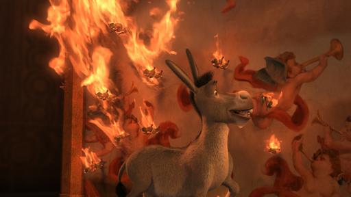 “Global illumination is something lighters everywhere love”, says Pearce. “That bounces the light off all the surfaces.” The challenge is global illumination, often implemented as ray tracing, can be expensive. “It's brilliant for architecture fly-throughs where the lighting is static and baked onto the building”, says Pearce. “Our problem is everything in Shrek 3 is moving.” The DreamWorks software “bakes” (calculates ahead of time) what's not moving and then tries to do the parts that are moving efficiently. “Global illumination is in almost every scene in Shrek 3”, says Pearce. “Scene complexity is what caps us now, such as forests. Ray tracing there is not reasonable.” Advances in Linux computing power and multicore chips and software are pushing render capability higher and higher.