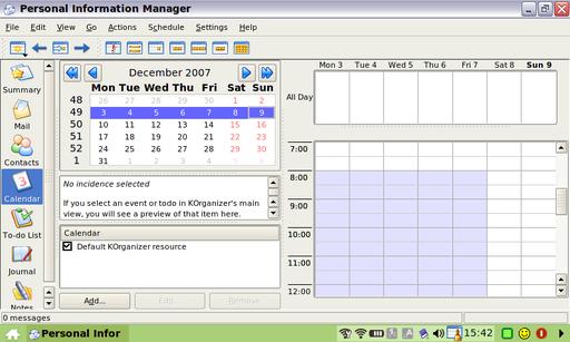 The Work applications include Thunderbird for e-mail, KDE's Kontact suite for PIM and Adobe's Linux Acrobat Reader software. OpenOffice.org version 2.0 is available, and it performs surprisingly well given Eee's limited resources. One feature that isn't immediately apparent, but mentioned in the manual, is that a terminal can be accessed with the keybinding Ctrl-Alt-T. SSH and rdesktop are two applications that can be accessed this way for those who are terminal-savvy.