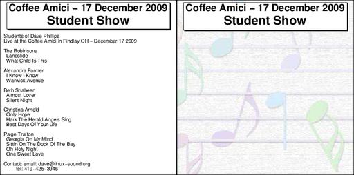 The coffeehouse is a single room with good acoustics and lighting that poses no special problems for a video recording. Coffee Amici also has an excellent in-house sound system manned by co-owner Craig Allen, so I knew the original sound source would be well balanced. I planned to perform with most of the students, so I needed to position the camcorder where I could operate it remotely. I also needed to get a good shot of the performance area and a good audio level. Fortunately, I had no problems with my setup, and the shoot was trouble-free.