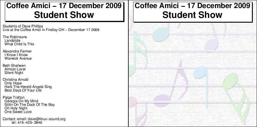Simplicity and ease were my prime directives throughout this project, so when I wanted to make inserts for the disc jewel cases, I availed myself of the services of Avinash Chopde's cdlabelgen, an on-line insert creation utility. I selected a background, added titles, songlists and credits, and saved the output as a PDF file to be printed as needed (Figure 6).