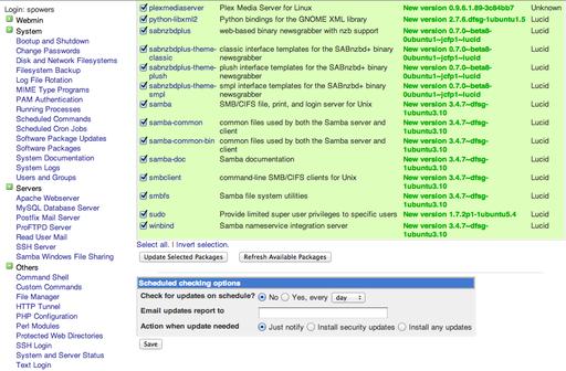 I have to be honest, many people dislike Webmin. They claim it is messy, or that it doesn't handle underlying services well, or that the whole concept of root-level access over a Web browser is too insecure. Some of those concerns are quite valid, but I think the benefits outweigh the risks, at least in many circumstances.