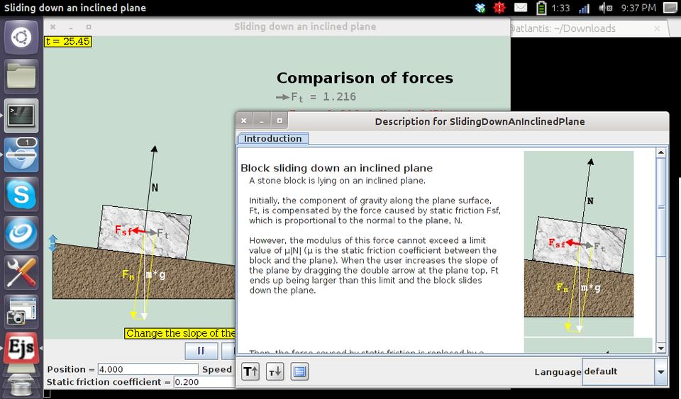 Figure 1. For example, starting up the simulation of sliding down an inclined plane also pops up some introductory material.