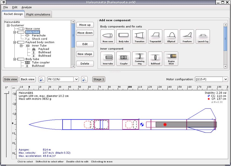 I've never once made a model rocket. I've always wanted to, but apart from “tube with explodey rocket part”, I really didn't know where to start with designing. I recently found an open-source application that should help me with my lack of rocket science know-how: OpenRocket.