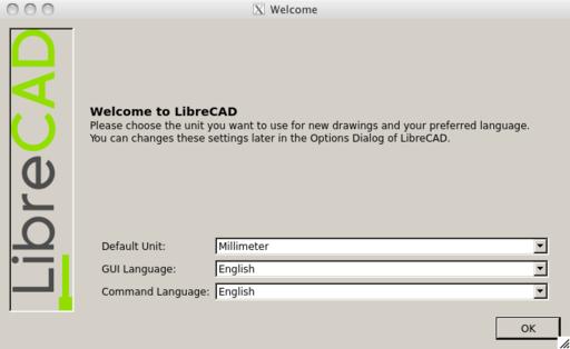 Once LibreCAD is installed, you can launch it from the application launcher for your desktop, or you can run the librecad command from a terminal. The first time you start LibreCAD, you will be greeted with a welcome window (Figure 1).