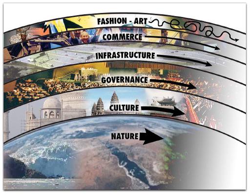 One dividing line is between standards and platforms built on them. This is also the line between infrastructure and commerce in the “layers of time” graphic from The Long Now Foundation (longnow.org)—see Figure 1.