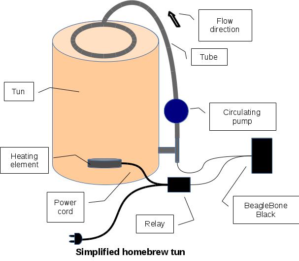 By using a thermometer, a PID controller and a PWM output on the BeagleBone, you can control your brew tun when brewing your beer.