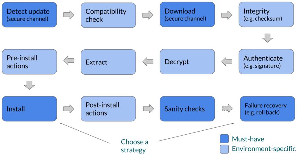 As you've seen, both the power and the network can be very unreliable and insecure in an embedded environment. An embedded updater must have a couple properties and features in order to tackle these challenges sufficiently.