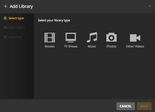 To add a folder, simply click the + next to the library section on the left. Then you must select the library type (Figure 3). The reason for selecting a type is that movies are scanned from databases that are different from television shows or music databases. Also, Plex supports photos and home movies, which aren't scanned for online metadata at all. Once you add the folders to a particular library, Plex will scan for content. Notice that a “Library” can have multiple folders. This means if you have several locations where you store movies or television shows, you can add them all to the same section in Plex so you don't have “TV Shows 1” and “TV Shows 2”. Plex just combines all the folders in the database and presents the content as one.