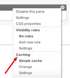 The panels cache is configured on the configuration page for each panel. It is usually configured on a per-pane (part of a page) basis.